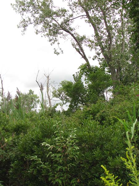 In Pennsylvania, this community type occurs only on Presque Isle, on the shore of Lake Erie. It is found as a zone surrounding swale ponds, slightly higher in elevation than the ponds but lower than the dune ridges. The substrate is sand, and the water table fluctuates seasonally; it is at or near the surface during the spring, and by autumn it falls below the surface but remains accessible to deep-rooted shrubs. The community is dominated by a mixture of bayberry (Myrica pensylvanica), silky dogwood (Cornus amomum), red-osier dogwood (Cornus sericea), Morrow's honeysuckle (Lonicera morrowii), and willows (Salix spp.), with scattered eastern cottonwood (Populus deltoides) and European white birch (Betula pendula). Herbaceous species include bluejoint (Calamagrostis canadensis), sedge (Carex scoparia), Bebb’s sedge (Carex bebbii), blackish wool-grass (Scirpus atrocinctus), Canada goldenrod (Solidago canadensis), sharp-fruited rush (Juncus acuminatus), and southern blue flag (Iris virginica). The community tolerates fluctuation of water levels within a season, due to weather fronts or seasonal variation in precipitation; fluctuations in lake levels over decades may move the community around on the landscape or eliminate it during some years.